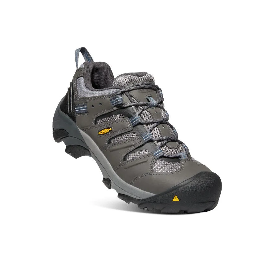 Dependable hiker fit with jobsite-focused features. Durable leather + mesh upper in these steel toe work shoes provides essential protection and comfort.Best For: Construction | Mechanic | Light Manufacturing | Trucker | Plumber | Electrician